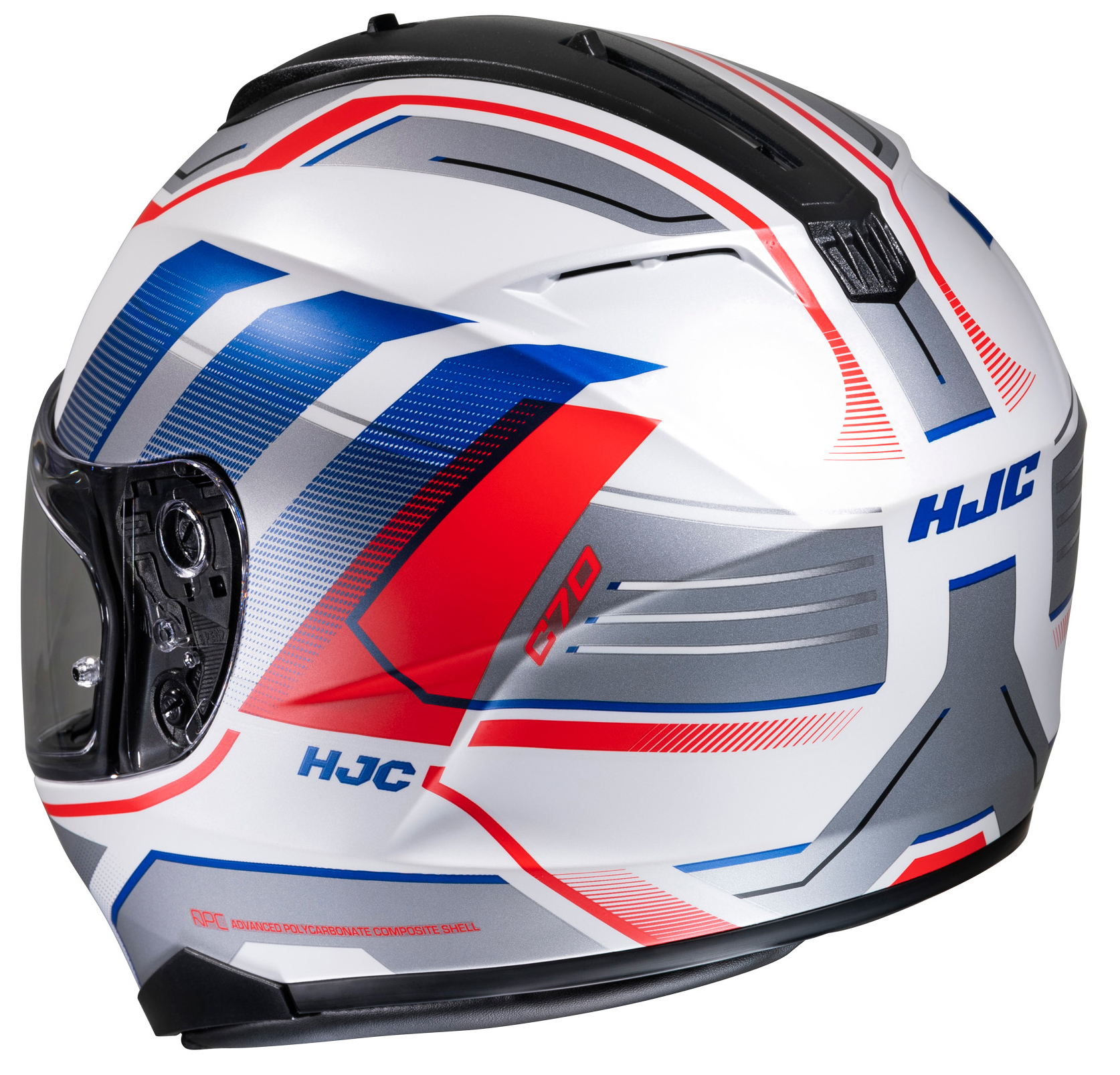 Le C70 emprunte sa coque à son fameux prédécesseur en polycarbonate sophistiqué, le IS17 de HJC, et propose le même confort et la même sécurité. Les différentes tailles de casque du C70 sont réparties selon deux coques et offrent, dans tous les cas, un ensemble relativement compact. Ce casque pourvu d’une visière solaire intégrée pèse à peine 1600 grammes, ce qui n’est guère exagéré. Les lignes judicieusement apposées lui confèrent sa forme aérodynamique et canalisent le vent pendant la conduite.