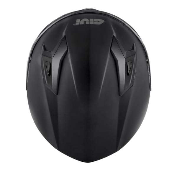 Les deux différentes coques de casque conviennent pour toutes les tailles de casques disponibles, et sont fabriquées en thermoplastique. Compact, léger et, dans ce cas, aérodynamique grâce à au déflecteur soigneusement intégré à l’arrière. Cela inclut immédiatement les ouvertures de ventilation grillagées et non-fermables. En taille M, l’échelle de GIVI indique que vous avez 1550 grammes sur la tête. De retour à l’avant, la ventilation supérieure dédoublée se démarque. Deux oreilles de chat, actionnées indépendamment à l’aide d’un curseur que vous trouverez facile à manipuler même avec des gants moto. En bas, au centre, vous pouvez sentir que le curseur de la ventilation mentonnière provient de la même boîte. La combinaison d’une ventilation mentonnière, d’une ventilation supérieure, et d’extracteurs garantit une tête froide.