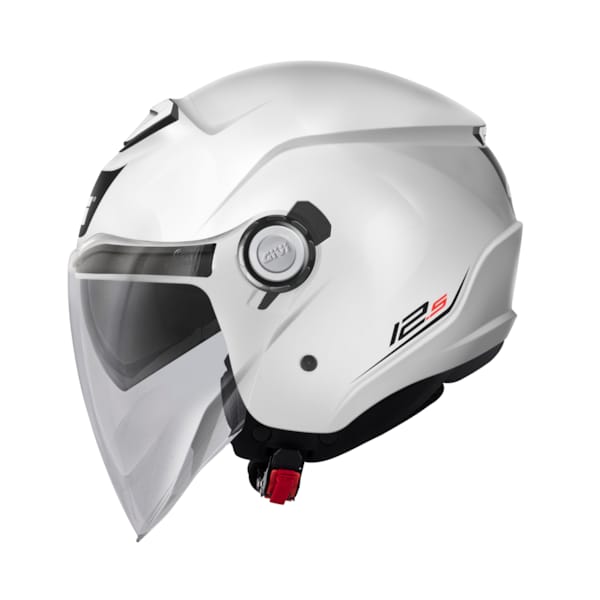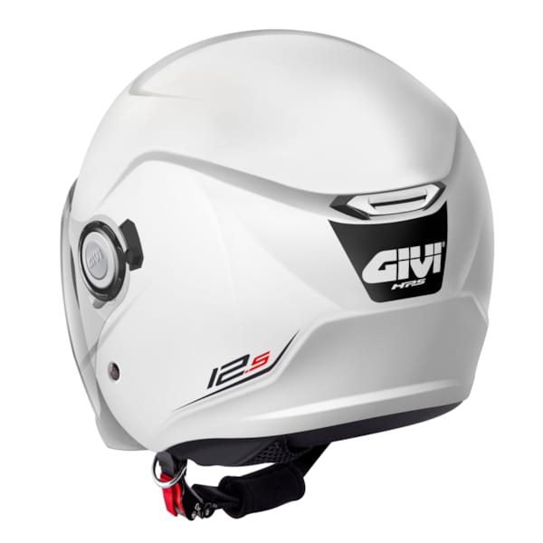 En bas, le casque jet 12.5 de GIVI est fourni d’une fermeture micrométrique.