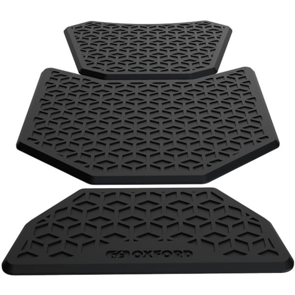 Le matériau 3D utilisé (silicone) crée un tampon de 3 mm d’épaisseur entre vous et votre réservoir. Cela permettra principalement une meilleure protection, dans certains cas aussi un tout petit sentiment de sécurité et de stabilité, et en fait, le matériau utilisé par Oxford ici résiste à peu près à tout. L’huile, un bon brossage, la saleté, le temps... aucun souci. Vous collez le protège réservoir Gripper – simple, 3M – au centre de votre réservoir, là où vous le jugez nécessaire.