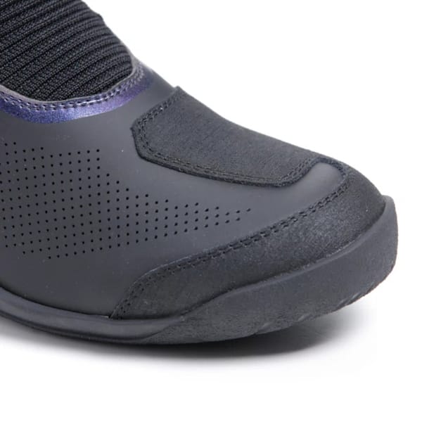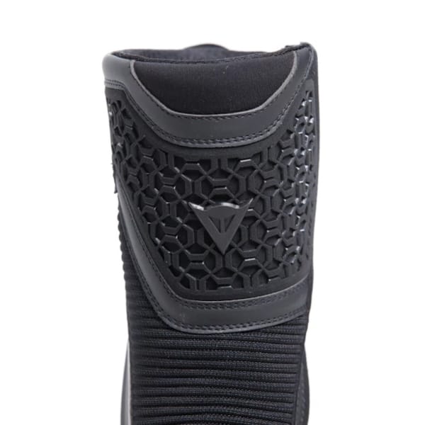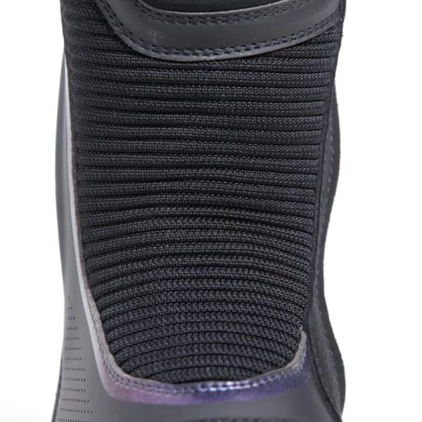 Le Gore-Tex joue évidemment un rôle important dans ce confort protecteur, mais il ne faut pas sous-estimer le rôle de la coque extérieure. Une partie de cette couche extérieure est perforée par laser, ce qui favorise nettement la ‘climatisation’ interne. L’extérieur intégral vaut de toute façon la peine d’être examiné de plus près : la microfibre utilisée nécessite peu d’entretien et, grâce à de grandes pièces de daim et à des zones extensibles judicieusement placées, cette botte moto devient une solution chouette, stylée, et surtout différente et plus contemporaine, à tous les défis de bonnes chaussures moto.