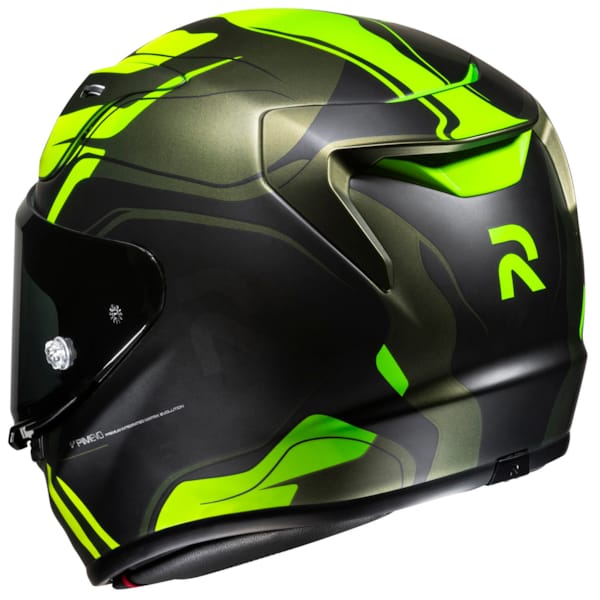 La coque de casque est fabriquée selon la méthode PIM EVO (« Premium Integrated Matrix »). Cela implique l’utilisation de fibres de verre, d’aramide, et de carbone, entre autres, afin d’obtenir une coque de casque très légère (environ 1500 grammes) mais robuste. Les différentes tailles de casques sont réparties entre quatre coques. La forme de la coque a été testé dans une soufflerie afin d’obtenir une aérodynamique optimale. Pour les mêmes raisons, HJC a mis un spoiler à l’arrière du casque, et ils affirment que ce casque moto vous permet de profiter pleinement des joies de rouler à grande vitesse.