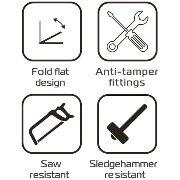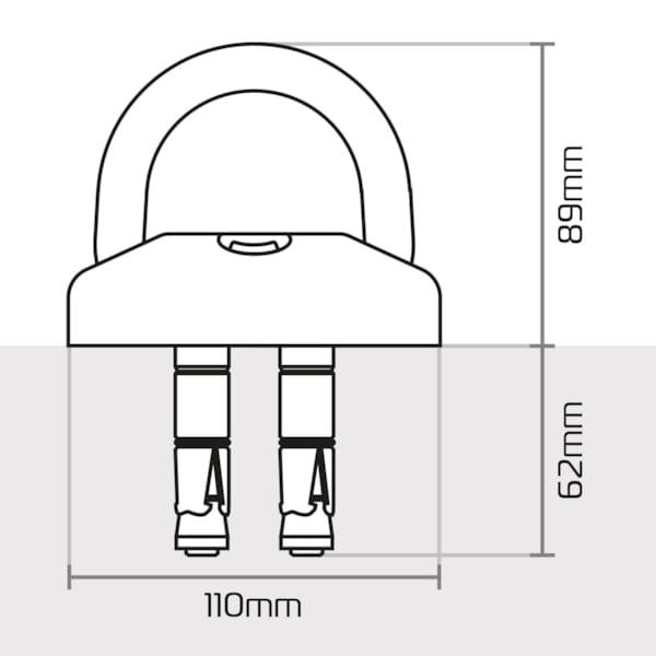 Deux chevilles de 62 mm sont à percer dans le sol ou le mur pour une installation optimale. Le design de l’ancre et de l’arceau répond aux normes « Secured by Design », et une fois en place, elle résiste aux meuleuses d’angle, marteaux et scies. Si vous l’utilisez comme ancre de sol dans un espace partagé, vous pouvez rabattre l’arceau pour permettre de rouler facilement dessus.
