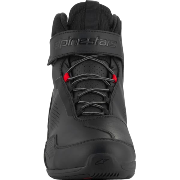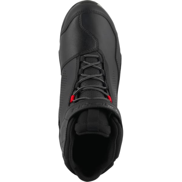 Le système de laçage cache le fait que ces chaussures moto s’enfilent presque comme des chaussettes. La partie inférieure de l’ouverture des Austral GTX se trouve à près de vingt centimètres du sol, favorisant ainsi une bonne imperméabilité. La languette de chaque Austral GTX permet de ranger les boucles de lacets. De plus, une bande Velcro permet de tout maintenir en place lors de vos trajets.