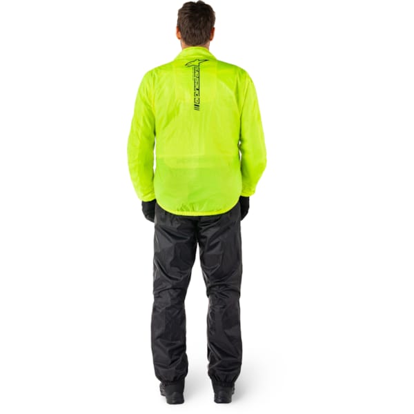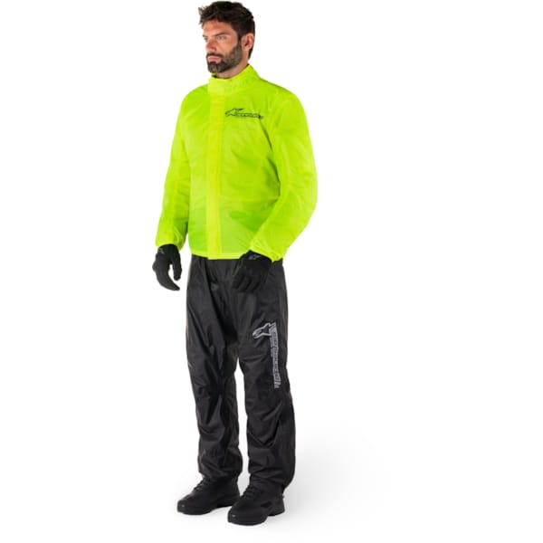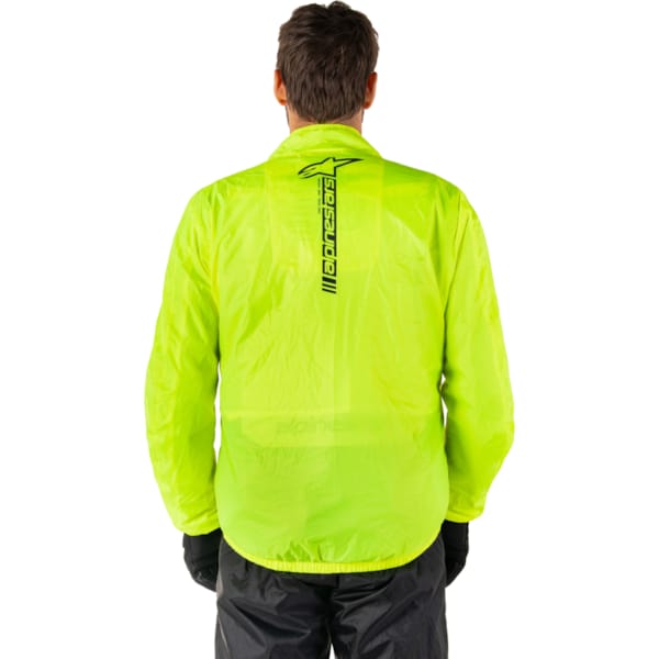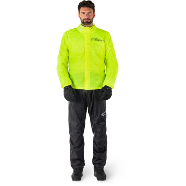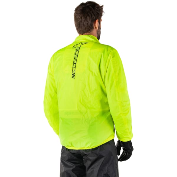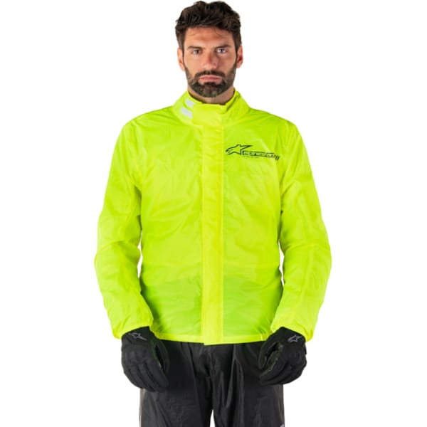 La tirette centrale est recouverte d’un double rabat. Une bande élastique (partielle) au niveau du col et des poignets permet de créer une véritable barrière naturelle contre l’infiltration d’eau. Le logo Alpinestars sert également de matériau réfléchissant.