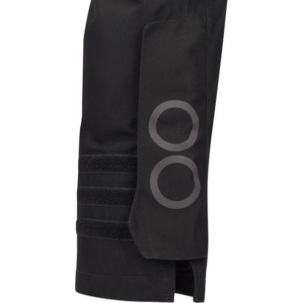 Au niveau des genoux, des bandes en accordéon assurent aisance et liberté de mouvement. Au bas de la jambe du pantalon, des bandes élastiques amovibles empêchent le vent et la pluie de pénétrer. Bien entendu, les fermetures éclair au niveau des chevilles contribuent également à améliorer le confort et la facilité d'utilisation.