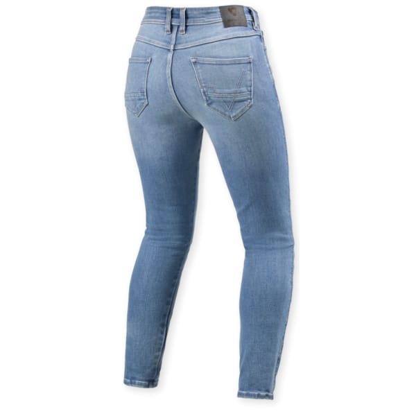 La protection de genou réglable en hauteur est une protection de genou SEESMART CE-niveau 1. Serrée, moulante, et préformée. Particulièrement pour les jeans moto ajustés comme celui-ci, la légère courbure du protège-genoux s'avère être un atout. Surtout si – comme ici – il est également ultra ventilé et s’intègre sans couture dans les jeans moto de cette génération REV’IT!. Ces protections sont fabriquées sur mesure et sont disponibles en versions gauche et droite. La nouveauté du Shelby 3 Lady SK est la présence standard de protections de hanches. Elles jouent un rôle dans la mise à jour vers un niveau de sécurité de classe AA.