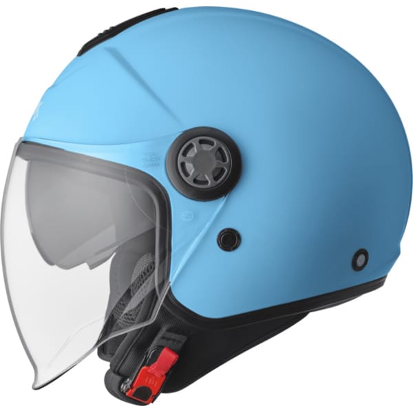 Chaque casque jet Gelato de GMS est réalisé en polycarbonate. On trouve ça léger et plutôt bien. Il bénéficie de la certification ECE 22.06 et une seule calotte est compatible avec les diverses tailles de casques de moto. Il était de toute façon quasiment impossible de faire plus compact et avec un poids de 1 250 g, tout le monde est satisfait. D’autant plus que le casque moto GMS Gelato dispose d'une longue visière transparente et d'un pare-soleil intégré. Ce sont des atouts indéniables quand vous voulez faire un tour entre deux glaces. Les deux visières sont faciles à manipuler.