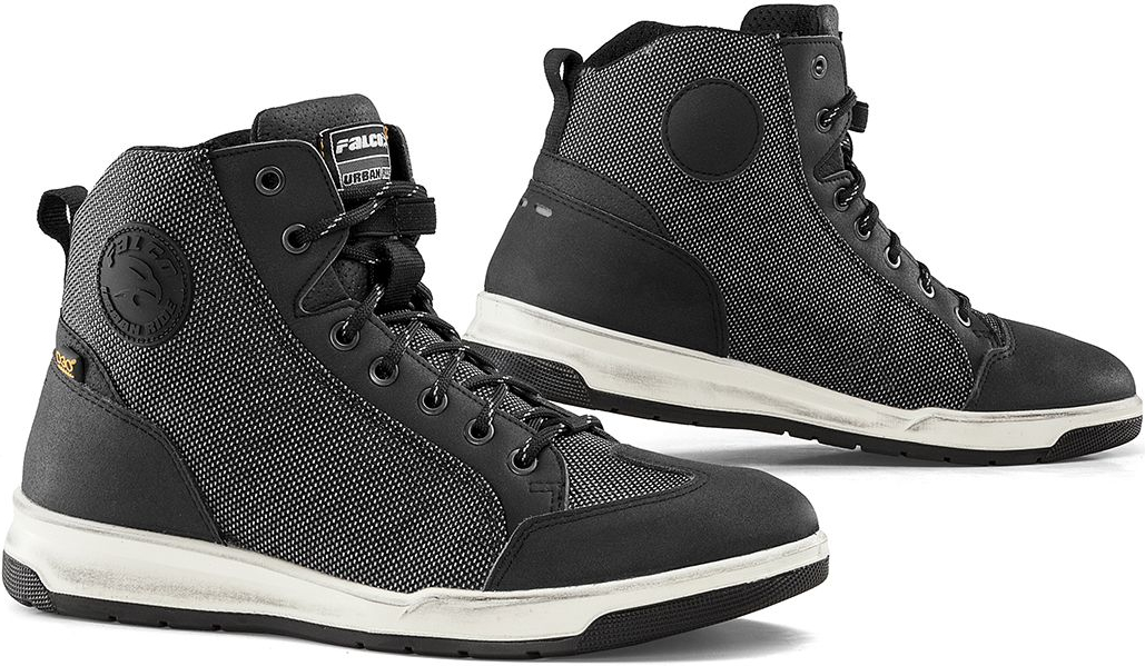 C’est une chaussure de moto à lacets, arrivant à hauteur de la cheville, avec des lignes dynamiques et sportives. Certains iront même travailler avec sans complexe. Son poids plume et son confort élevé permettent effectivement de marcher sans problème. Les lacets posent question pour beaucoup de motards (qui changent encore les vitesses et freinent du pied). Gianni Falco y répond par une boucle supplémentaire dans la languette : glissez-y les boucles de lacets pour éviter qu’elles ne s’accrochent au feu rouge suivant.