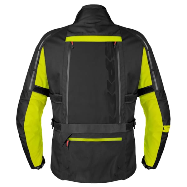 Le système SPIDI ERGOFIT intégré avec fermeture E.S.T. réglable au niveau du col assure un ajustement parfait. Les doubles sangles de centrage et les options de réglage sur les bras sont également utiles en ce sens. L'espace de rangement disponible comprend une paire de poches extérieures spacieuses, refermables et étanches (selon SPIDI) ainsi qu'un espace de rangement interne. Le fait que vous puissiez ranger une membrane dans la poche de rangement située dans le dos est tout à fait logique pour une veste de moto de ce type.