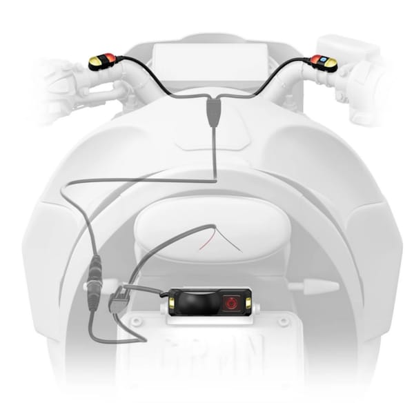 - Installation discrete: Une fois installé, le zūmo R1 Radar s'allume et s'éteint en même temps que votre moto ; pas de batterie, pas de recharge.