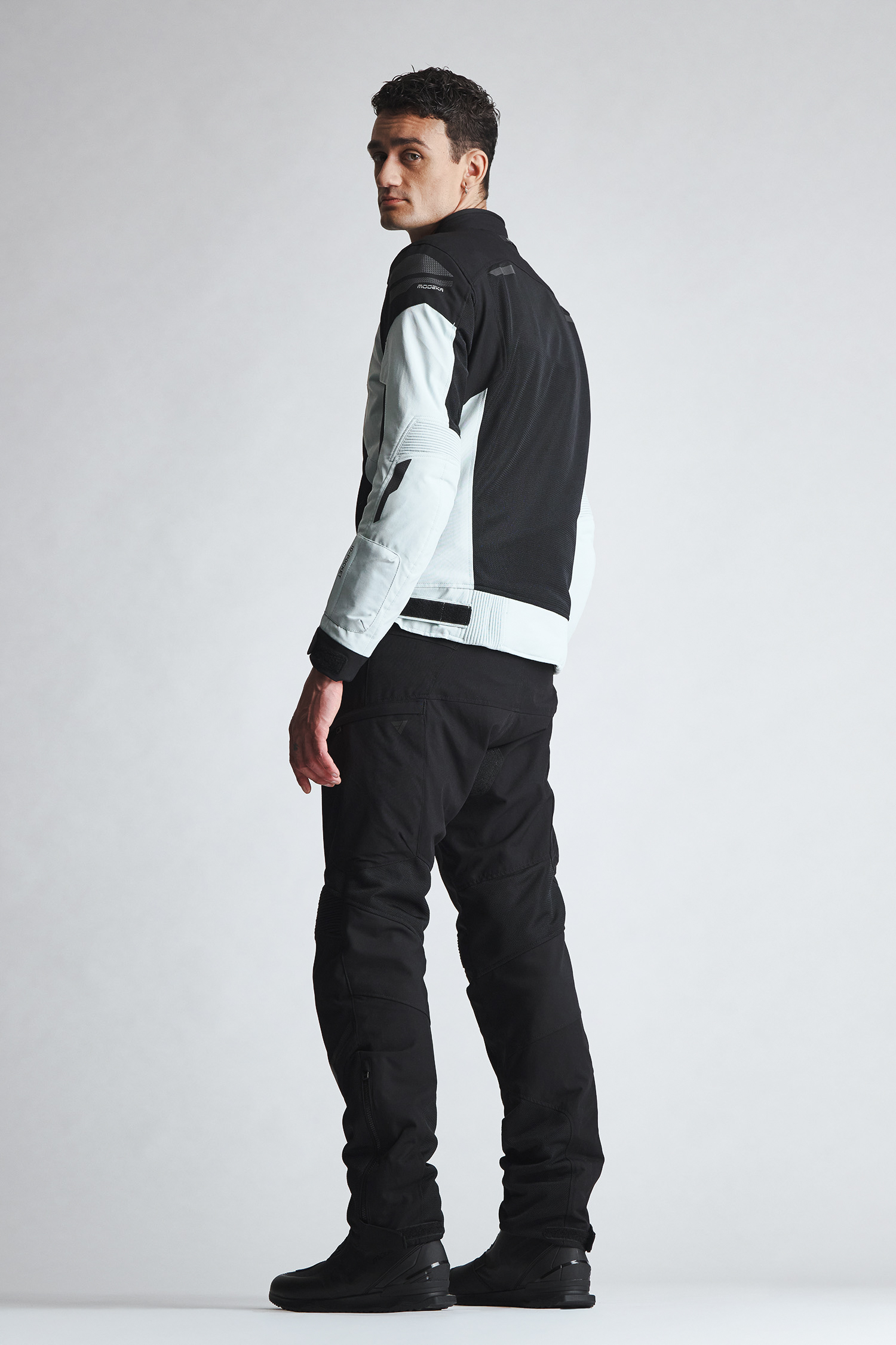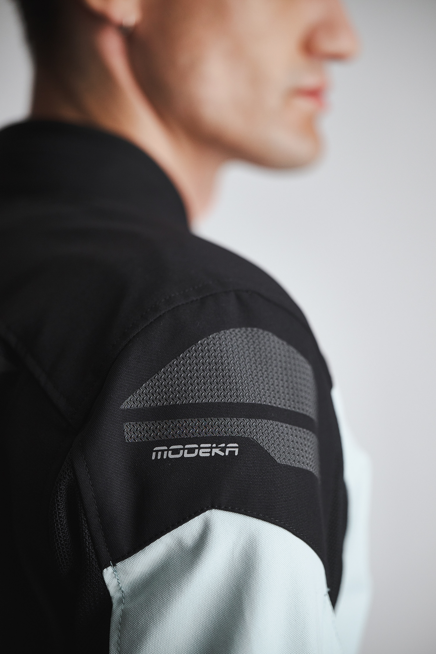 Pour la protection contre les chocs, MODEKA mise sur des protections d'épaules et de coudes B-Protect de niveau 2. Celles-ci sont réglables. Dans le dos, une poche est prévue pour accueillir une protection dorsale optionnelle certifiée CE. La matière réfléchissante présente reste discrète pendant la journée.