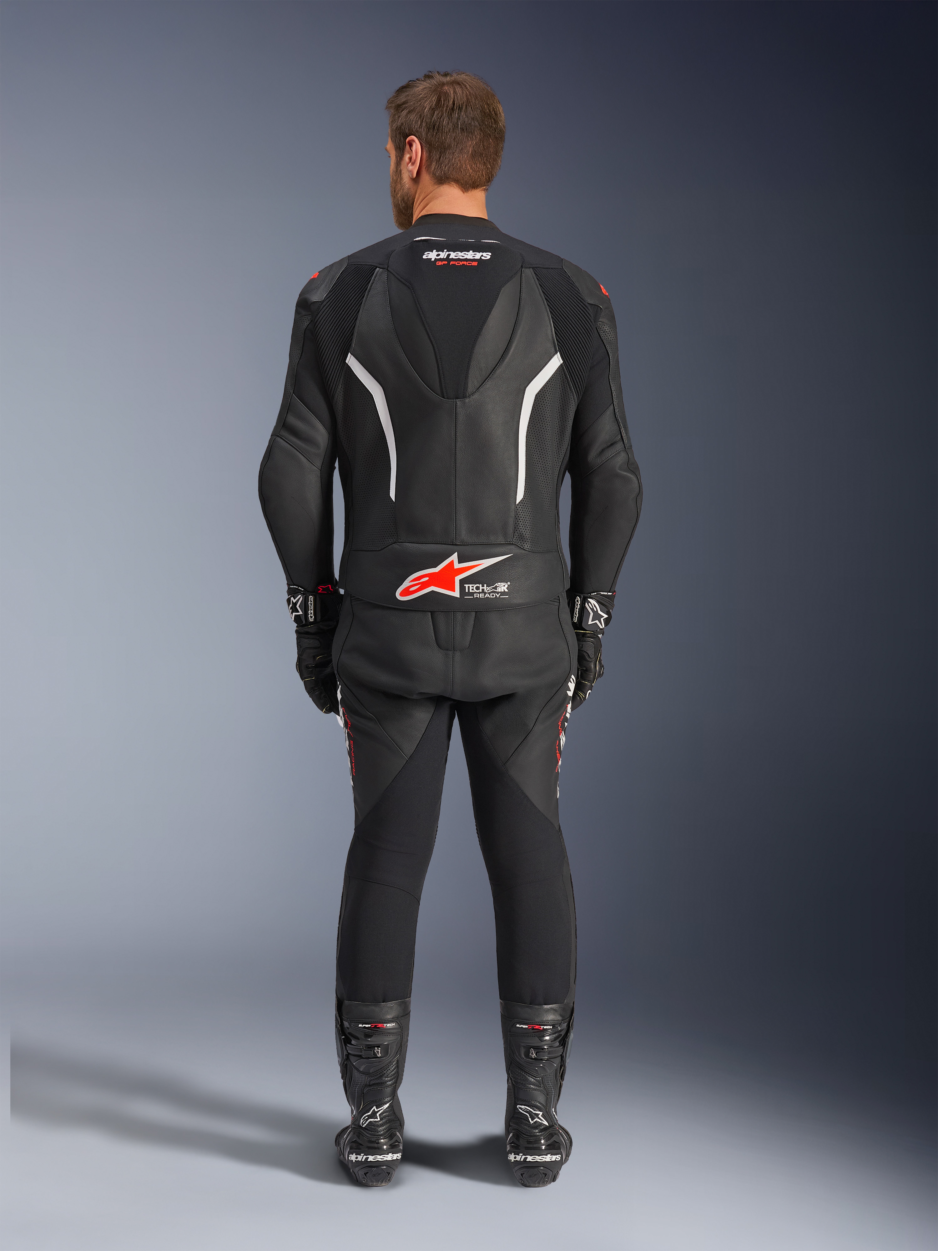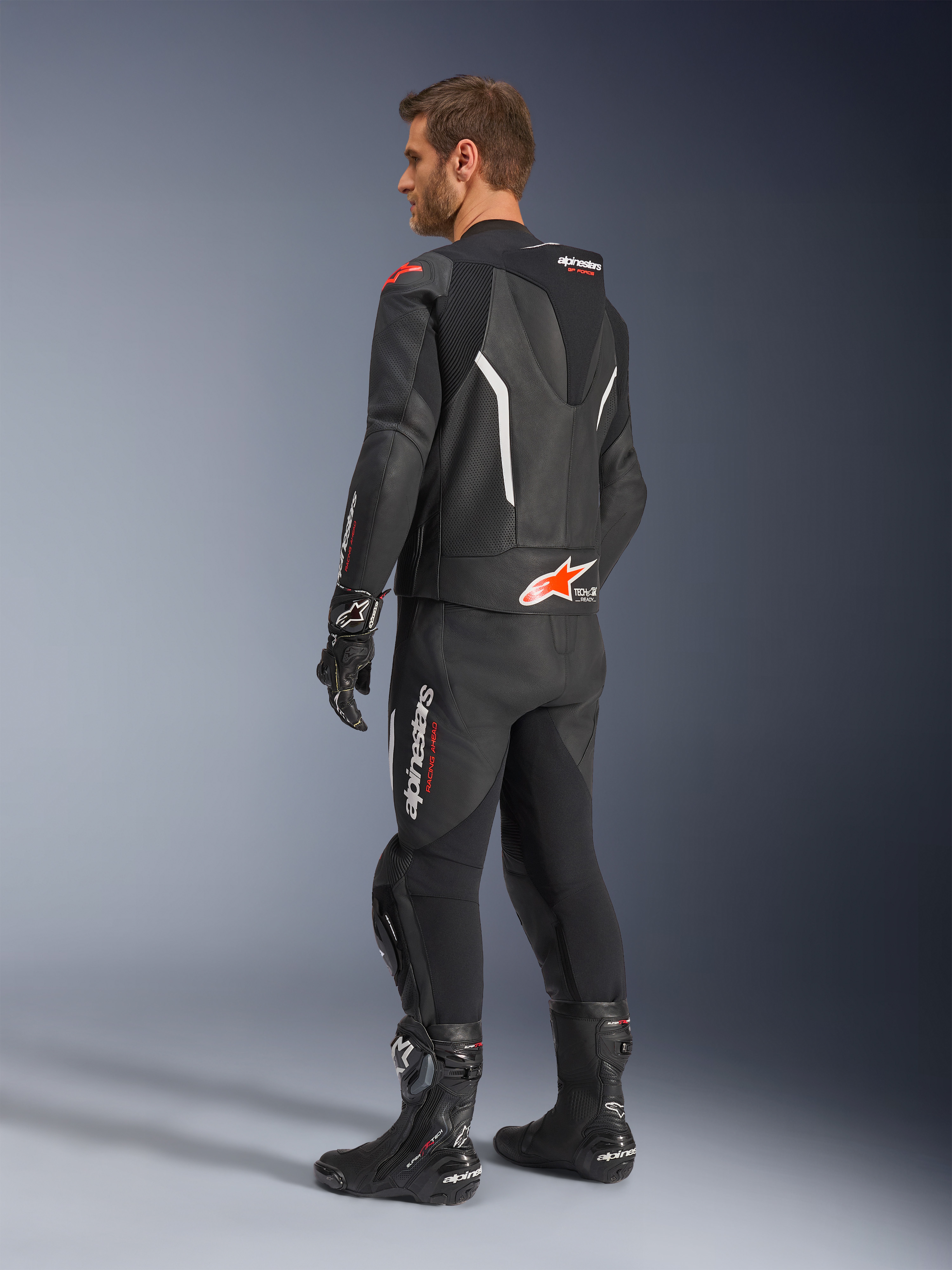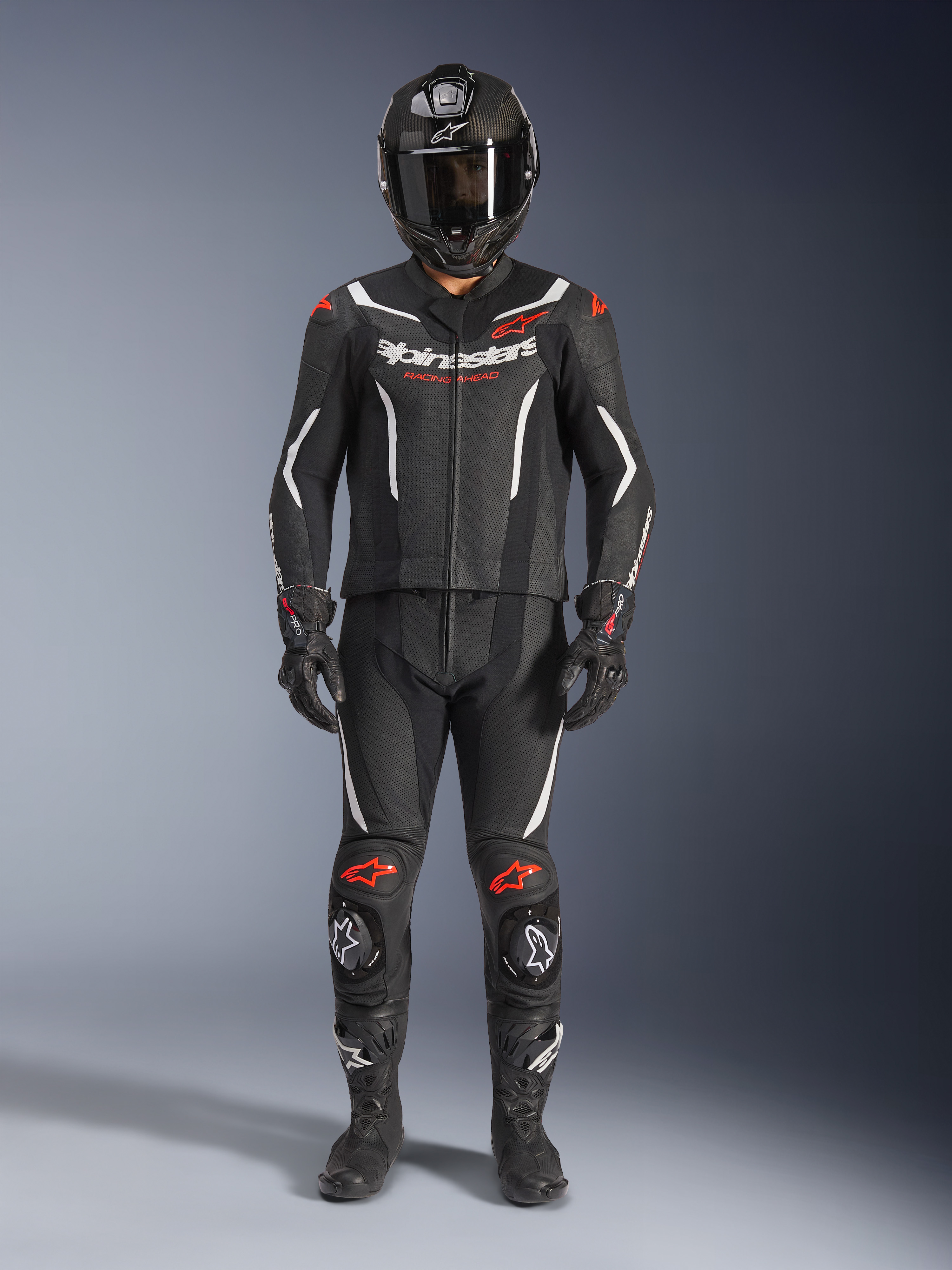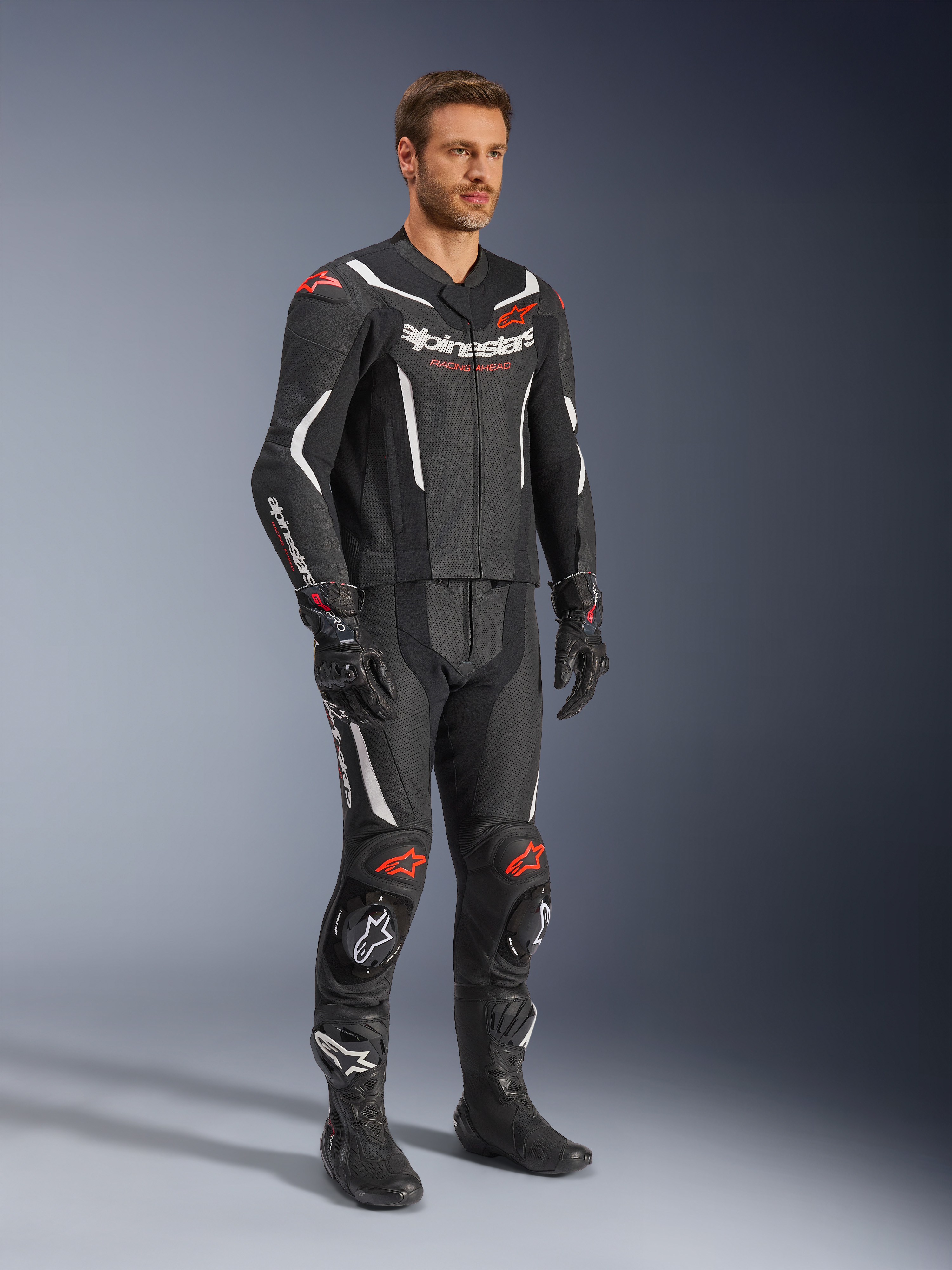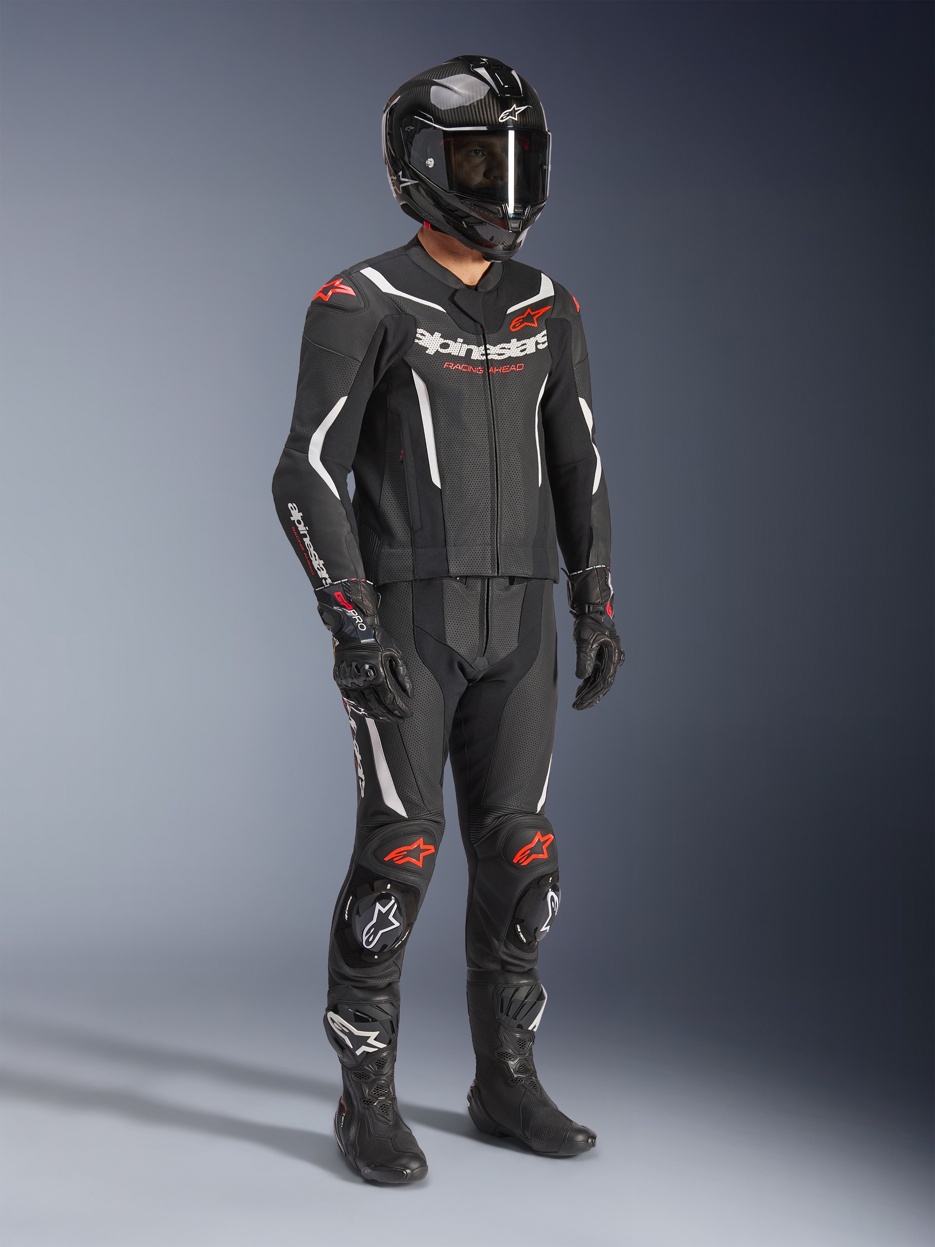 ALPINESTARS GP Force V2 2PC Suit Noir-Blanc-Rouge Fluo