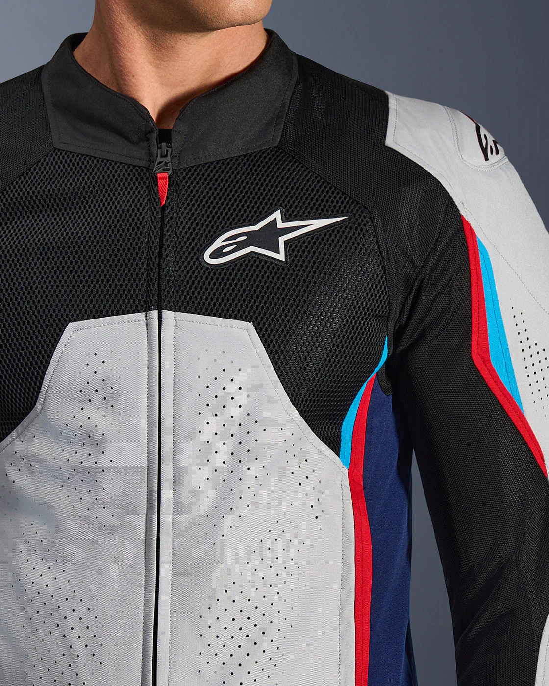 ALPINESTARS AST V3 Air Jacket Argent-Bleu Profond-Rouge Vif