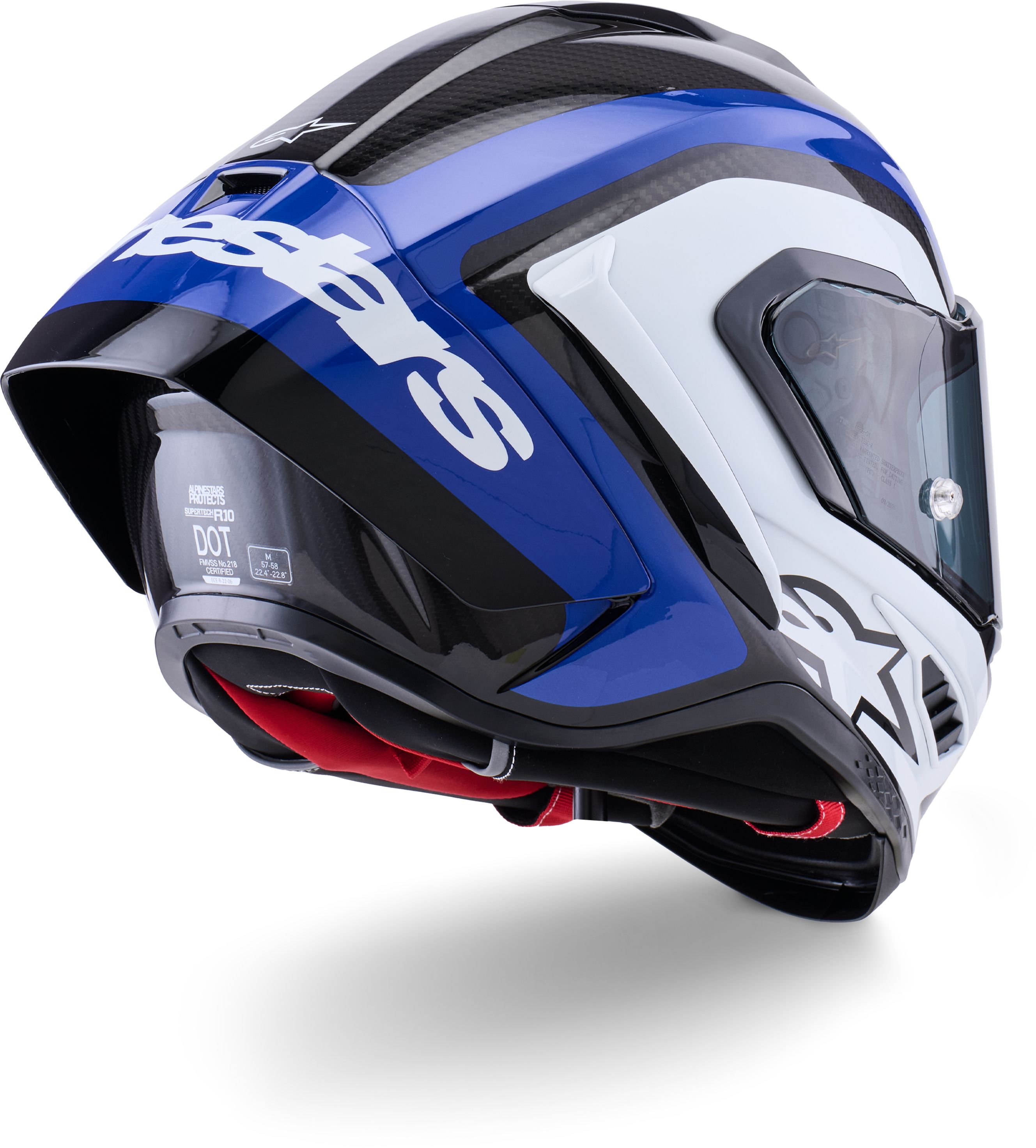 Avoir une visière de qualité est aussi important que la vision qu’elle offre. Le Supertech R10 propose un champ de vision latéral de 220 degrés et une vision verticale de 57 degrés, surpassant même les écrans de télévision grand format. Remarquez également la conception abaissée de l’ouverture pour les yeux à gauche et à droite (juste après le déflecteur de nez), optimisée pour maintenir une vision périphérique maximale en position de conduite.