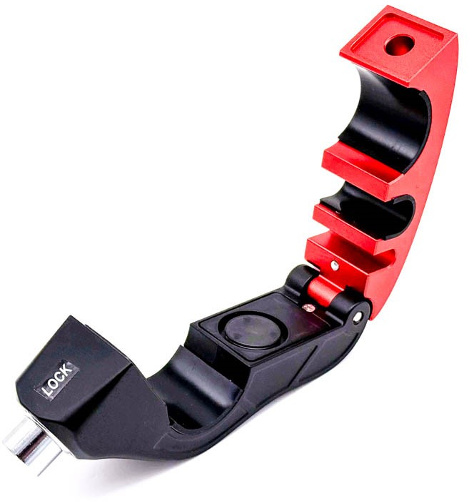 Le cylindre « Push Down » empêche le décrochage automatique de la broche de verrouillage une fois le verrou fermé. En quelques secondes, votre moto ou scooter est sécurisé. Attention à ne pas activer accidentellement l’alarme lors de son utilisation ; vous ne voulez pas ameuter tout le quartier par accident. Utilisez le câble pour fixer votre casque à la moto.