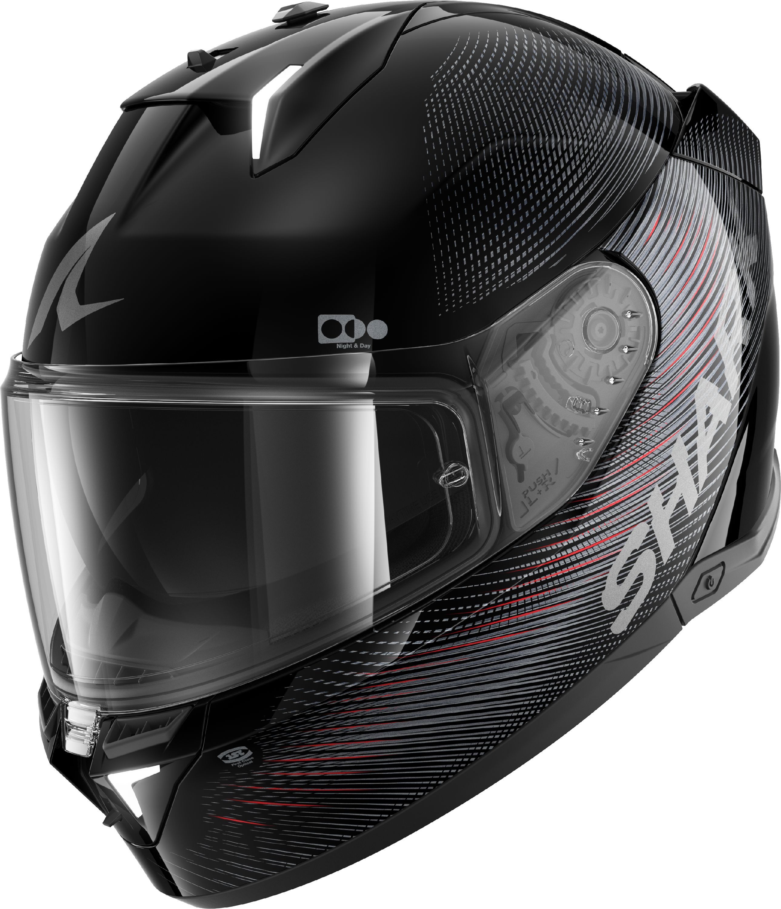 Malgré toute cette électronique, le Shark Skwal i3 ne pèse que 1585 grammes. Chose due principalement au thermoplastique injecté, servant de matière première à la coque externe. Ou, pour être plus précis, due aux deux coques de casque moto en polycarbonate et lexan™ injecté sous haute pression, qui contiennent les six tailles de casque disponibles.