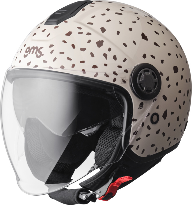 Chaque casque jet Gelato de GMS est réalisé en polycarbonate. On trouve ça léger et plutôt bien. Il bénéficie de la certification ECE 22.06 et une seule calotte est compatible avec les diverses tailles de casques de moto. Il était de toute façon quasiment impossible de faire plus compact et avec un poids de 1 250 g, tout le monde est satisfait. D’autant plus que le casque moto GMS Gelato dispose d'une longue visière transparente et d'un pare-soleil intégré. Ce sont des atouts indéniables quand vous voulez faire un tour entre deux glaces. Les deux visières sont faciles à manipuler.