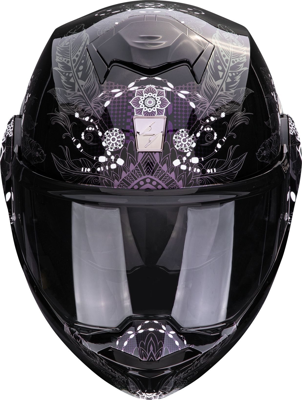 La visière transparente est prête à accueillir une lentille Pinlock®, qui se trouve d’origine dans la boîte. Retirer et/ou remplacer la visière s’avère une tâche un peu plus complexe que d’habitude car la mentonnière qui s’ouvre vers l’arrière partage son point de fixation et de charnière avec la visière transparente. Ici encore : pas de souci. Elle se retire d’elle-même et SCORPION a prévu deux ‘points d’arrêt’ supplémentaires ainsi qu’un outil spécifique, livré dans la boîte.
