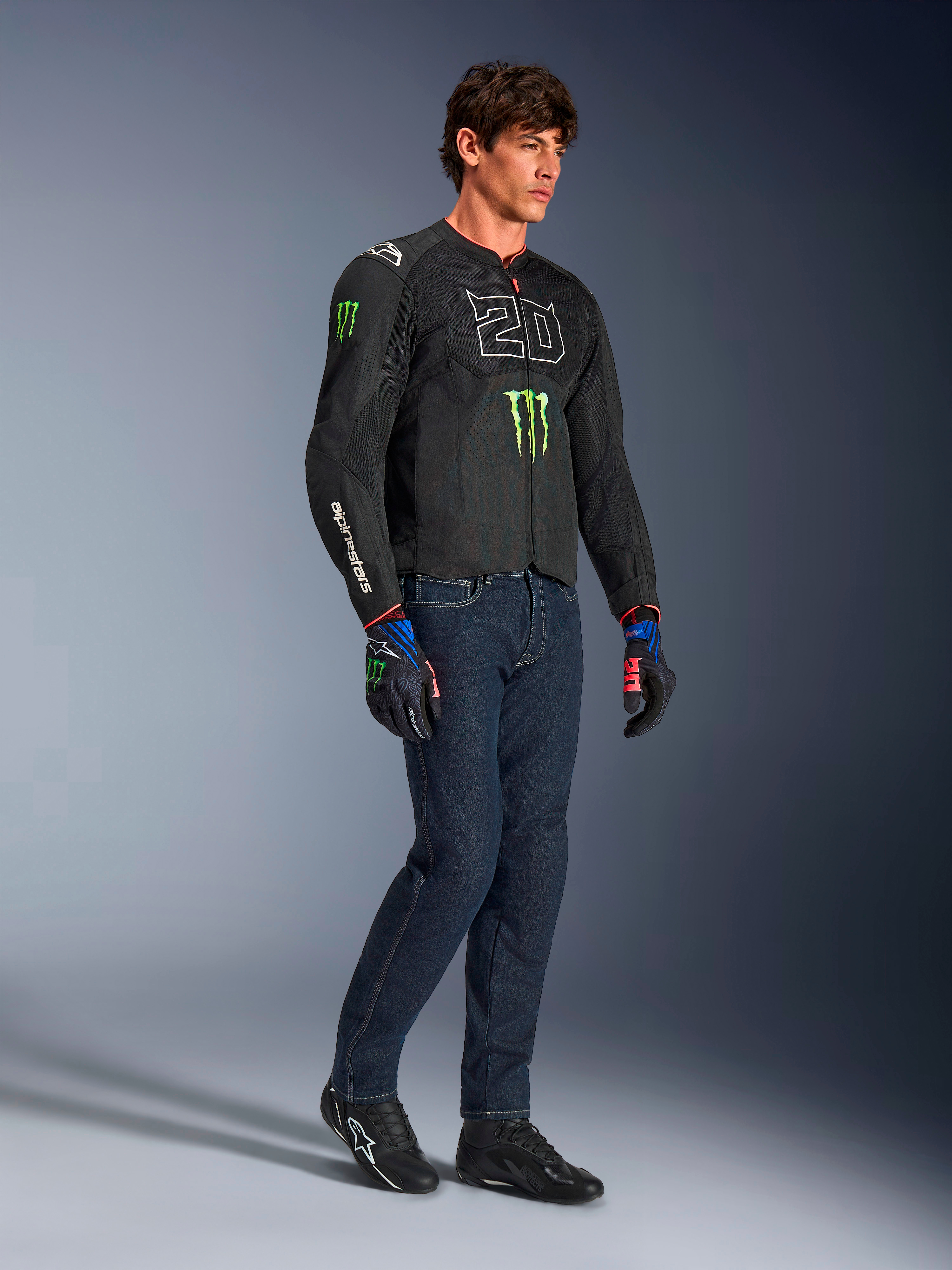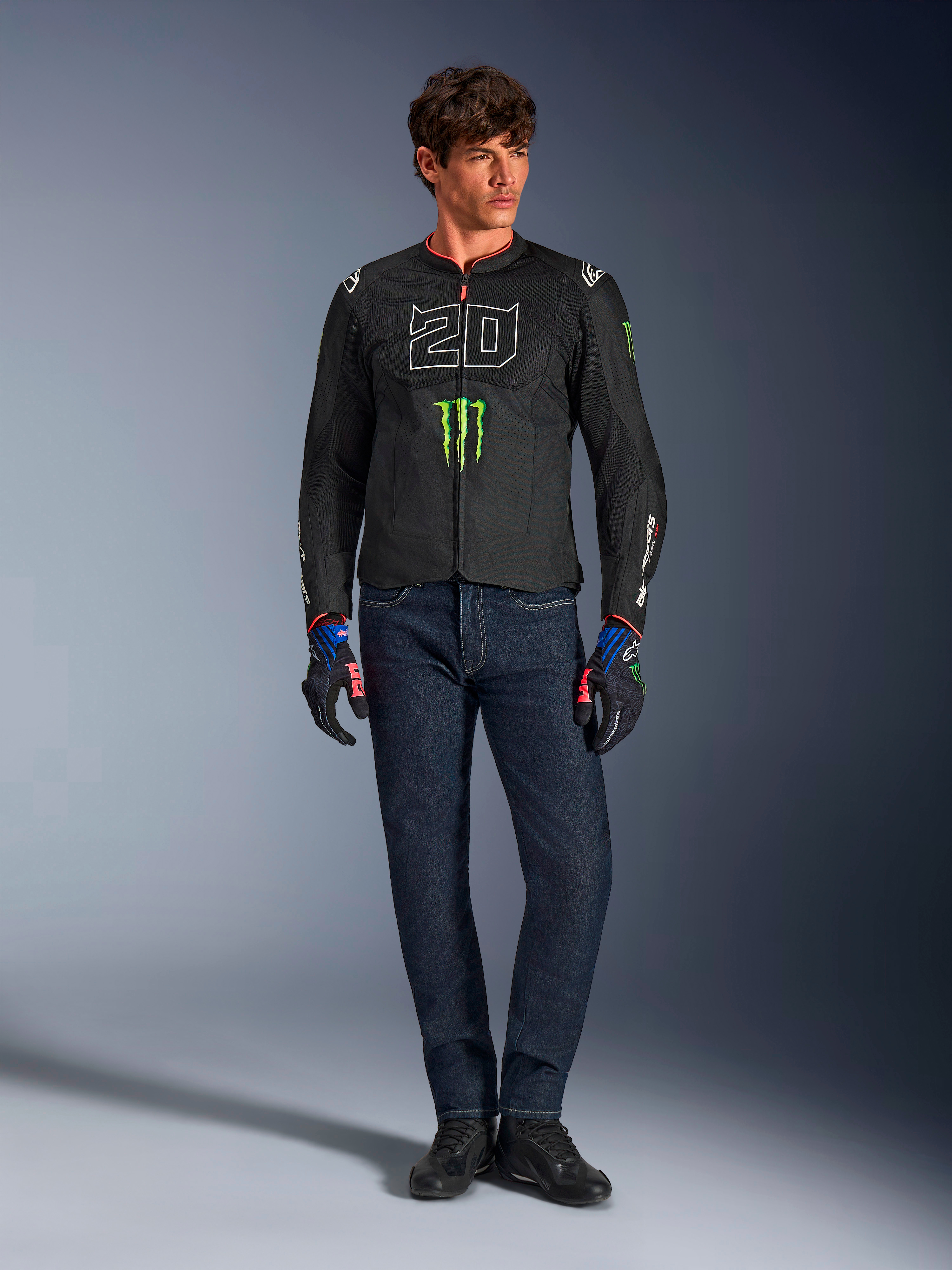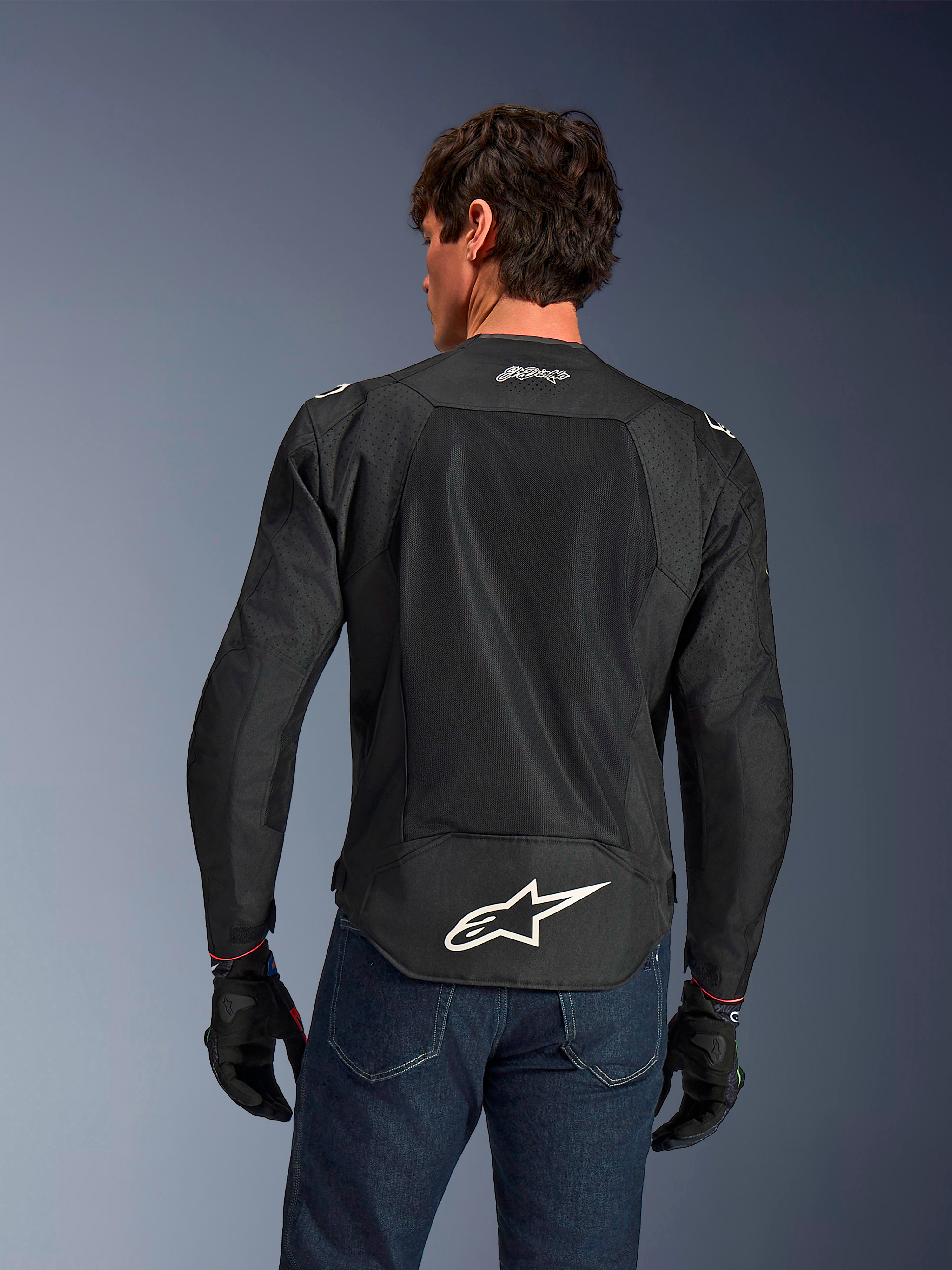 Résistant à l’usure, le textile 600D constitue une bonne base. C'est la raison pour laquelle Alpinestars a également apposé une couche de textile 600 deniers à l’intérieur des coudes et des épaules. Un vêtement n’est jamais trop résistant à l’usure, et ici, au moins, cela donne une veste de moto élégante et toujours légère. La légèreté est en grande partie due au mesh. De grands panneaux sur la poitrine, le dos et les bras, ainsi que des perforations en d’autres points, garantissent un flux d'air permanent.