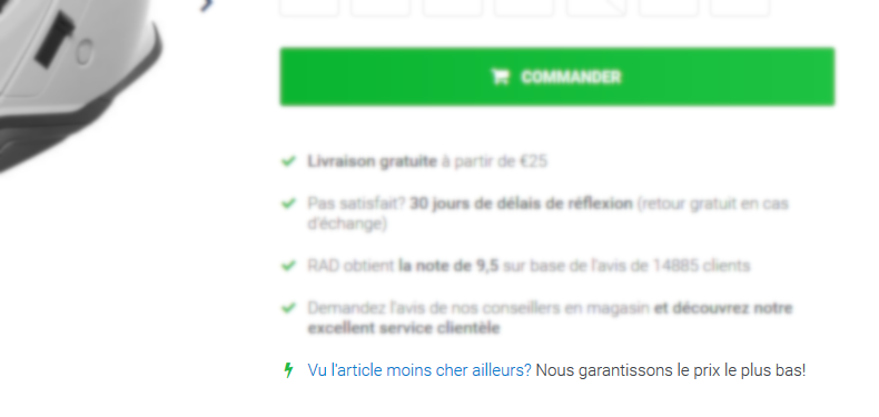 En tant que client, vous ne voulez naturellement jamais payer de trop pour le produit de votre choix. Chez RAD, c’est possible ! Nous offrons la garantie du meilleur prix ET nous ajustons également notre prix si vous trouvez le même article moins cher et en stock sur un autre site Web.