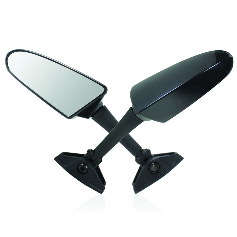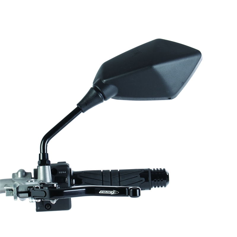 En outre, les possibilités sont nombreuses. Il y a le rétroviseur – le miroir et son logement – que l’on monte généralement sur le guidon, mais vous pourriez aussi opter pour des rétroviseurs bar-end ou des rétroviseurs à monter sur le carénage.