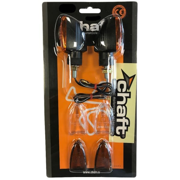 De CHAFT Blade biedt jou de mogelijkheid om regelmatig van lenskleur te wisselen. Dit agressief uitziend, universeel knipperlicht is voorzien van een 21W halogeenlampje en een niet-flexibele steel. De zwarte behuizing is vervaardigd uit kunststof. De Blade wordt geleverd met drie verschillende lenskleuren: transparant, oranje en gefumeerd. Alle lenskleuren knipperen oranje. Deze CE-gehomologeerde knipperlichten worden geleverd per paar, en zijn voorzien van kabel en moer.