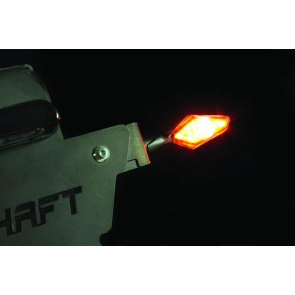 De Draft knipperlichten van CHAFT zijn kleine, scherp ogende en exclusieve lichtjes. De aluminium basis in het zwart, gecombineerd met de gefumeerde lens, zorgen voor een agressieve richtingaanwijzer met een niet-flexibele steel. Deze CE-gehomologeerde knipperlichten worden geleverd per paar, en zijn voorzien van kabel en moer.