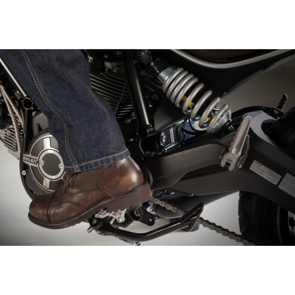 Hoe hoger het fashion- en ‘we lijken steeds minder op motorschoenen’-gehalte, hoe kleiner de kans dat je lederen schoeisel over een volwaardige schakelversteviging beschikt. Geen enkel probleem op een scooter maar anders levert het vele op- en afschakelen snel slijtage op. Jammer van de lederen schoenen vaak, want in de garantievoorwaarden zal je ‘slijtage’ niet terugvinden.