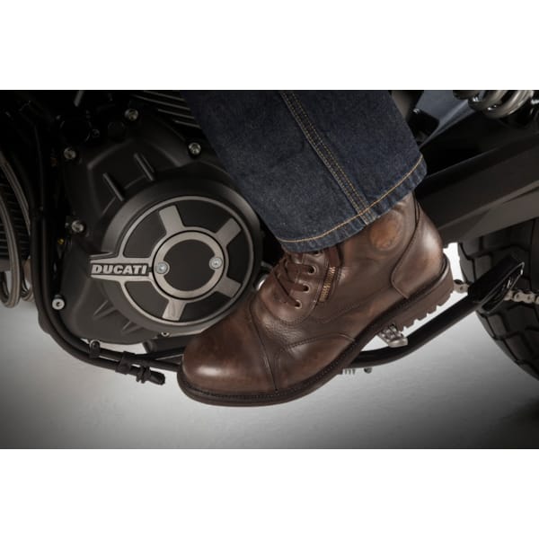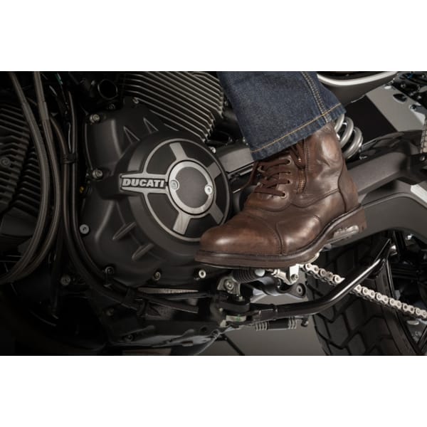 De comfortabele Aviator krijgt op het vlak van veiligheid assistentie van het gepatenteerde D3O®-materiaal waaruit de enkelcup vervaardigd is. D3O® focust op een efficiënte schokabsorptie en bescherming, in combinatie met een buitengewoon draagcomfort en maximale flexibiliteit. Een stevige, olie- en benzinebestendige gevulkaniseerde rubberen zool met veel grip zorgt voor een comfortabel dubbel gebruik, op en naast de motor.