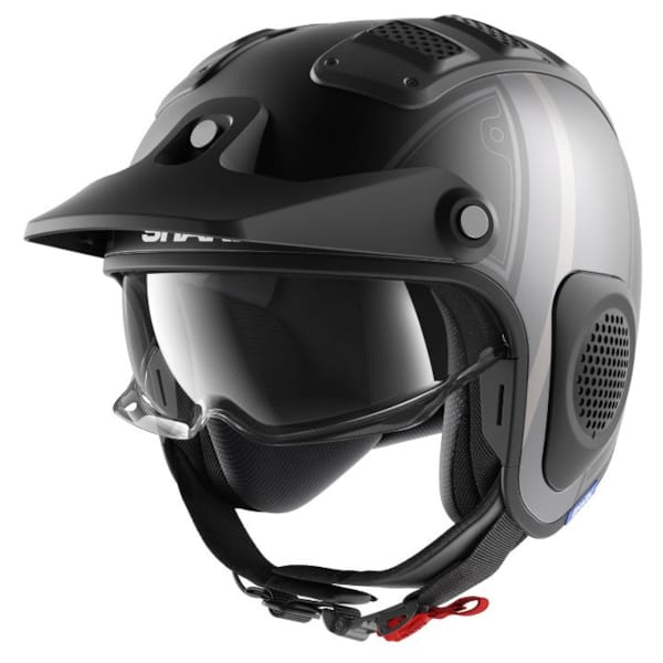 Het gaat wel degelijk om een jethelm, al krijg je er een afneembaar kinstuk bijgeleverd dat de X-Drak een meer integrale look bezorgt. Je klikt het – naar keuze – in enkele seconden los of vast.
