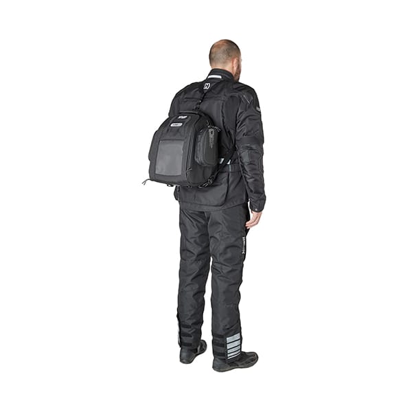 Om je zichtbaarheid ‘s nachts te vergroten is elke ULTIMA-T-tas afgewerkt met reflecterende details. Kabelaansluitingen vinden achteraan een veilige en waterdichte weg naar buiten. Gezien het relatief grote volume van 20 liter vallen de afmetingen (26 x 38 x 39 cm) mee, al helpt een tank van enige omvang natuurlijk wel.