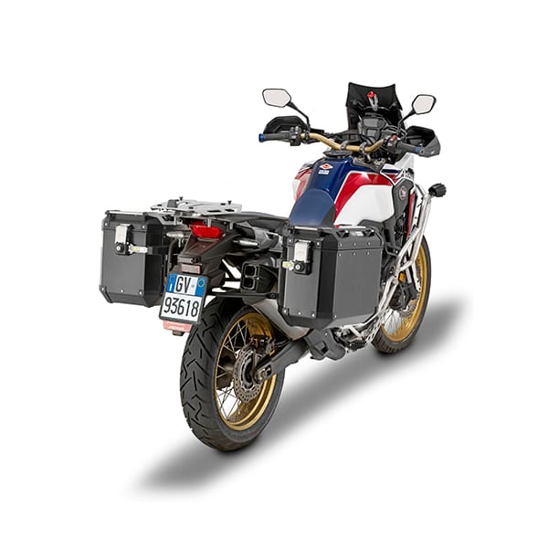 - Kunststof Jerrycan: een water, olie of benzine voorraad van 2,5l kan je meenemen in de GIVI Jerrycan. Met de E205 houder in inox, kan de Jerrycan eenvoudig bevestigd worden op deze Trekker zijkoffer.