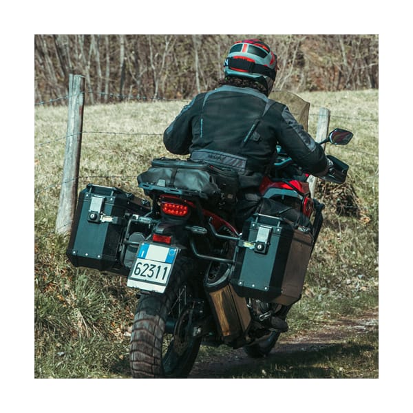 Met één enkele sleutel bedien je een sluitmechanisme dat de koffer zowel sluit als hem vergrendelt op de zijkofferhouder. Elke Outback heeft zijn unieke sleutel. Indien je een combinatie maakt van twee zijkoffers met een verschillende inhoud, bijvoorbeeld een 37 liter en een 48 liter, dan hebben deze twee niet dezelfde sloten/sleutels. Het is echter mogelijk om een set van twee of een set van drie sloten in optie bij te bestellen, zodat je met één sleutel alle koffers kan openen en sluiten. Dankzij een gelagerd handvat aan elke zijde draag je deze koffer ook probleemloos van en naar de motor. Met een inhoud van 37 liter is dit een smalle en elegante koffer, waar toch heel wat in opgeborgen raakt. Een helm zal evenwel niet lukken, maar die zet je tijdens de avontuurlijke ritten waar deze koffer om schreeuwt sowieso best op je hoofd. Wie grotere zijkoffers wenst, richt zijn pijlen beter op de Trekker Outback 48.