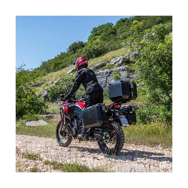 De GIVI Trekker Outback zijkoffer maakt deel uit van de Monokey serie en is enkel geschikt als zijkoffer. Hier gaat het specifiek om één koffer, bestemd voor de rechterkant van de motor. In deze versie bestaat hij uit zwart geanodiseerd aluminium. Deze Trekker Outback is een compacte en handige aluminium koffer die perfect past in de hedendaagse trend van avontuurlijk uitziende motorfietsen. Toegankelijk van bovenaf, uitermate schokbestendig en bovendien krachtig en robuust qua uitzicht. Stevig maar tegelijk elegant en handig, met talloze accessoiremogelijkheden en bevestigingspunten (spanriemhouders) om bovenop de koffer extra bagage mee te nemen. Het Outback-aanbod bestaat uit een aantal verschillende formaten van top- en zijkoffers waarmee je naar eigen wens een set samenstelt. Interessant bij asymmetrisch opgebouwde motoren: door de 37 aan de kant met de uitlaat te bevestigen en de 48 aan de kant zonder uitlaat, is vaak het probleem van de asymmetrie verholpen. Standaard opent deze 1.5 mm dikke aluminium koffer bovenaan. Wanneer deze zijkoffers gebruikt worden in combinatie met een (grote) topkoffer, bestaat de kans dat de deksels niet volledig verticaal geopend kunnen worden. Om in dergelijk geval de zijkoffer toch toegankelijk te maken, zijn de Outbacks voorzien van een speciaal scharniersysteem dat toelaat het deksel integraal op te tillen. Hij is uitgerust met een veiligheidsslot en is spatwaterdicht. De Trekker Outback wordt snel en makkelijk op een speciaal voor jouw motorfiets ontworpen montagekit vastgeklikt en vergrendeld. De bevestiging kan enkel door middel van een PL-CAM-rek. Deze rekken zijn zwaarder dan de gewone PL-rekken, en zijn uitgerust met het Cam-Side bevestigingssysteem. Je vindt ze hier