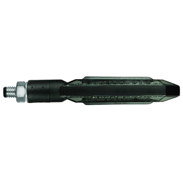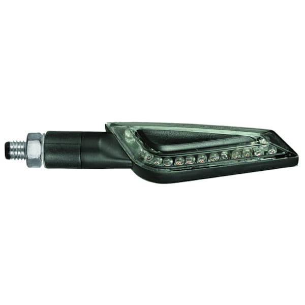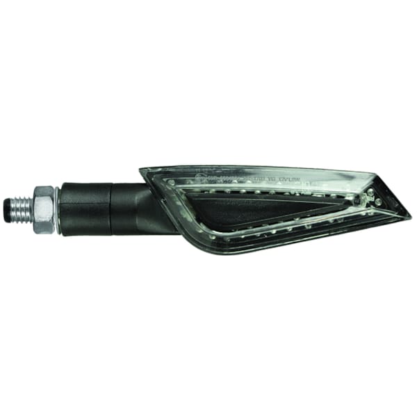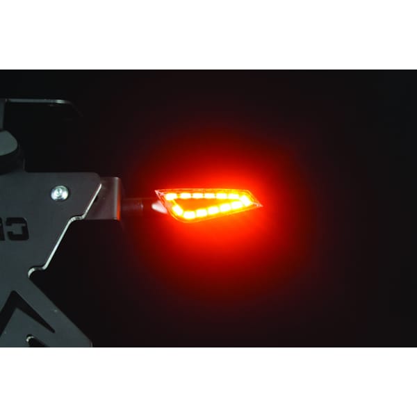 De CHAFT Shelter is een exclusief eigen mini-design van de Franse fabrikant. Je motorfiets ziet er meteen een stuk agressiever uit. Dit universele knipperlicht is voorzien van ledlampjes in pijlpuntformatie en heeft een niet-flexibele steel. De zwarte behuizing in aluminium en de gefumeerde lens zijn een streling voor het oog én wijzen ander verkeer duidelijk op je bedoelingen. Knipperen gebeurt natuurlijk in het oranje. Deze CE-gehomologeerde knipperlichten worden geleverd per paar, en zijn voorzien van kabel en moer.