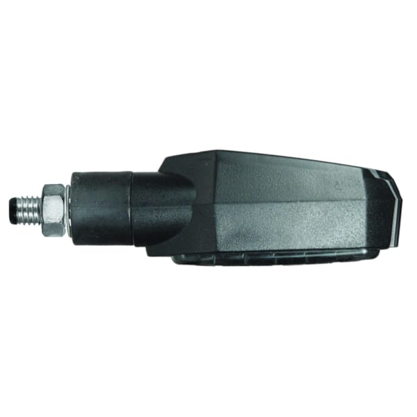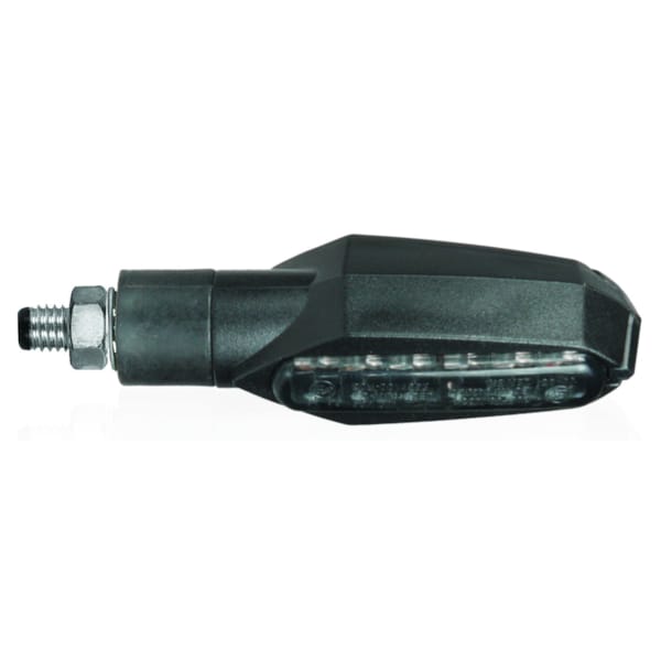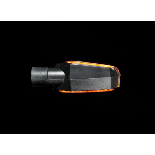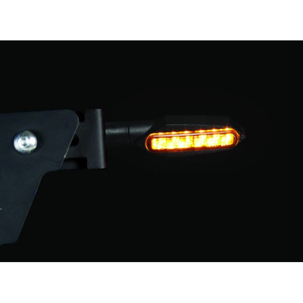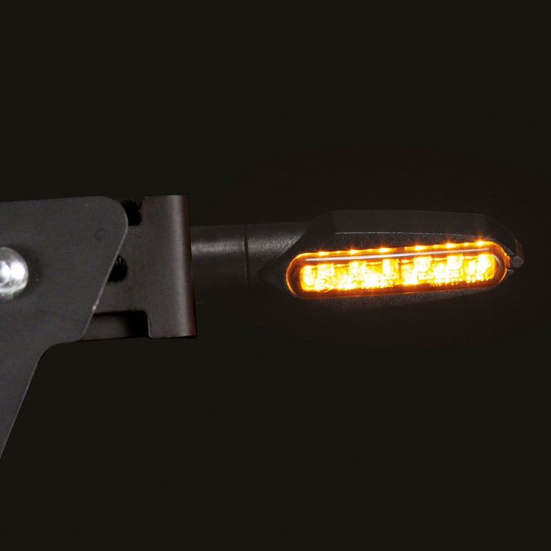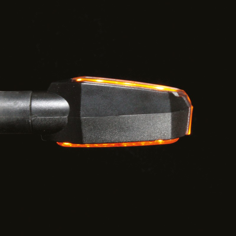 Een streepje naar links of een streepje naar rechts. Duidelijker wordt het niet. De Fiction richtingaanwijzers met niet-flexibele steel van CHAFT zijn letterlijk oranje strepen. Strak, rechtlijnig, duidelijk. De zwarte basis met gefumeerde lens zorgen voor een tikkeltje agressiviteit maar vooral veel exclusiviteit. Opvallen die deze ledlampjes sowieso, want het licht is aan beide zijden van de lamp te zien. Deze CE-gehomologeerde knipperlichten worden geleverd per paar, en zijn voorzien van kabel en moer.