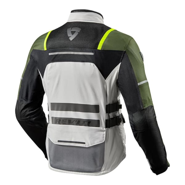 De snit is typisch ‘touring’ en dus langer dan je van pakweg een racejas verwacht, al moet je het REV’IT nageven: in wat voor versie ook, ze gaan steeds voor strak en nauw aansluitend. Verwacht dus geen wapperende tentzeilen, wel een goed om het bovenlichaam zittende motorjas. Je hebt het zelf grotendeels in de hand, want traditioneel voorzien de Nederlanders een pak aanpassingsmogelijkheden. Riemen met schuifgespen op de flanken (twee aan elke kant), schuivers op de onderarmen, een drukknop of twee op de bovenarmen, een verstelbare kraag met YKK-drukknop bovenaan en spantouwtjes onderaan de jas.