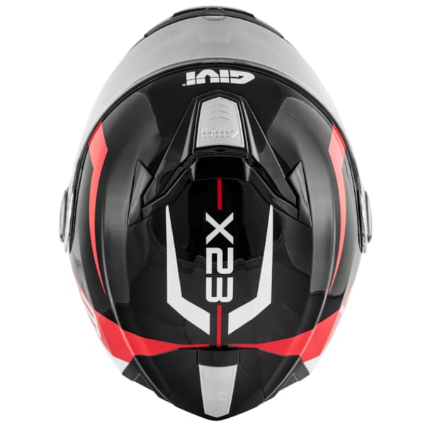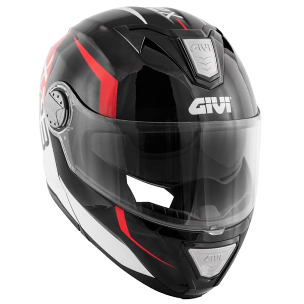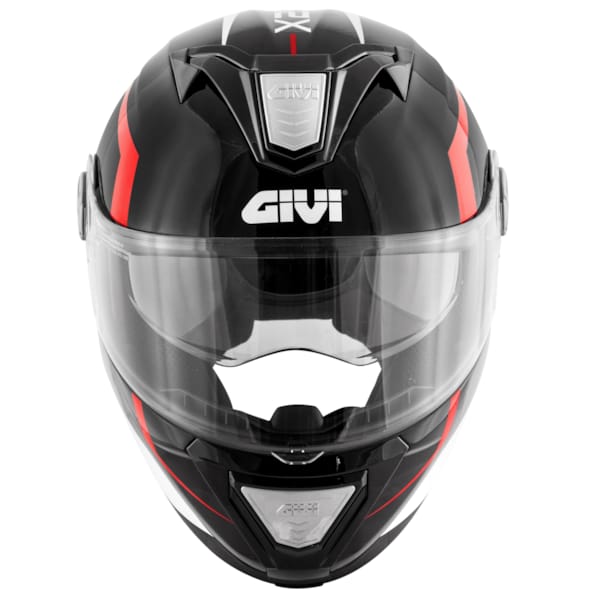 De buitenschaal is er eentje in thermoplastic en één helmschaal volstaat om alle maten te bevatten. Toch blijft het totale gewicht met 1660 gram – min of meer – binnen de perken. Zeker omdat een aantal ‘weightgainers’ standaard inbegrepen zijn. Te beginnen met kin- en topventilatie, telkens voorzien van een stevige open- en dicht-schuiver. In dezelfde stijl vind je er zo eentje achteraan, ook al voorzag GIVI nog twee open luchtuitlaten onderaan. Er is duidelijk aandacht besteed aan een goede luchtcirculatie in de helm, maar ook de buitenzijde vertoont duidelijke aerodynamica-ingrepen.