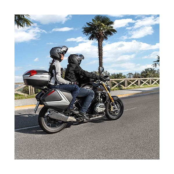 Dankzij een geïntegreerd handvat draag je deze koffer ook makkelijk van en naar de motor. Met een inhoud van (twee keer) 37 liter en 10 kilogram kan je hier al wat in kwijt. Een helm past probleemloos, zowel links als rechts, en dan blijft er zelfs nog plaats over. Het ontwerp houdt bovendien rekening met het zitcomfort van de passagier, die zich niet in bochten hoeft te wringen om comfortabel mee te reizen.