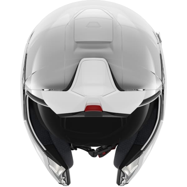 Geïnjecteerd thermoplastic, daaruit bestaat de helmschaal. Een helmschaal die in twee formaten bestaat om alle helmmaten te bevatten en op die manier compact en licht blijft. Het kinstuk is – uit wat voor hoek je ook kijkt – een eyecatcher. Het vizier is eraan vastgemaakt en dus klap je de hele zaak in één vloeiende beweging open. Eén hand volstaat daarvoor en het is een lightversie van wat je doorgaans aantreft in een systeemhelm-mechanisme dat zorgt voor een vlotte werking. Een jethelm met het uitzicht van een integraalhelm en de werking van een systeemhelm, dat zijn er drie ineen.