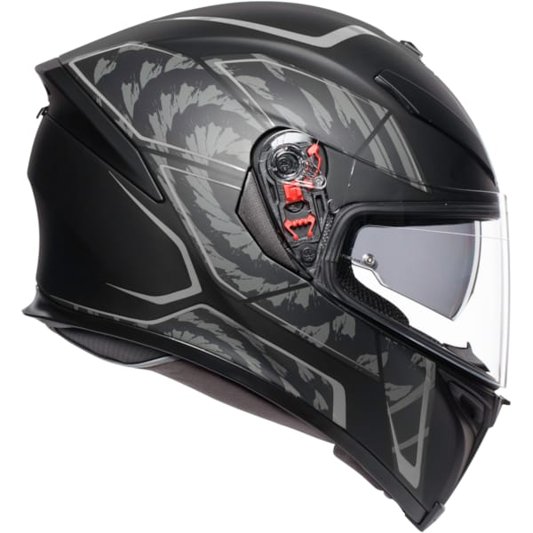 Het hoofdbestanddeel van de helmschaal bij de AGV K5 S is carbon-glasvezel. De helmschaal in glasvezel komt in twee verschillende formaten om alle helmmaten zo strak mogelijk te bevatten. Je bent een racemerk of je bent het niet, en dat resulteert in zeer compacte, strakke en lichte motorhelmen.