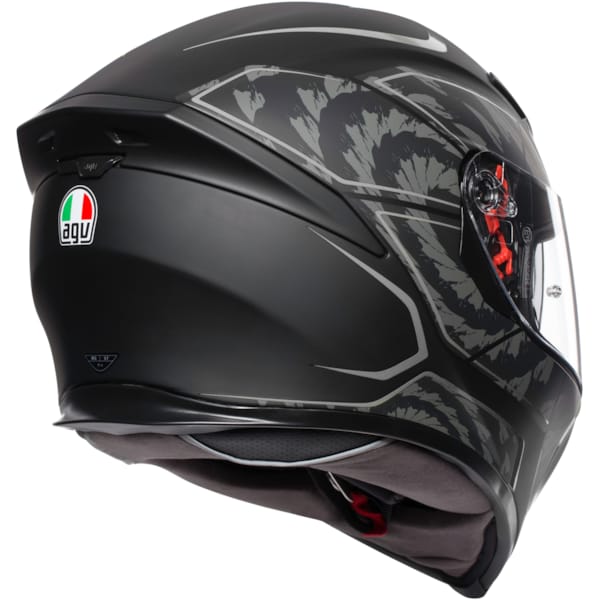 AGV – al 70 jaar actief en bijna 25 jaar motorhelmleverancier van Valentino Rossi – tracht verder te gaan dan veel andere helmproducenten. Zeker vanuit veiligheidsperspectief en met een traditie in de racerij, overstijgen ze graag de standaard. Ook bij de K5 S is dat zo. In dat opzicht valt vooral het ‘collarbone safe profile’ op, waarbij de vorm van de motorhelm onderaan voorkomt dat je bij een letterlijke opdoffer je eigen sleutelbeen in twee breekt. Datzelfde profiel (met twee steunpunten en een boogvorm in het midden) maakt een helmdonut trouwens geen overbodige luxe.