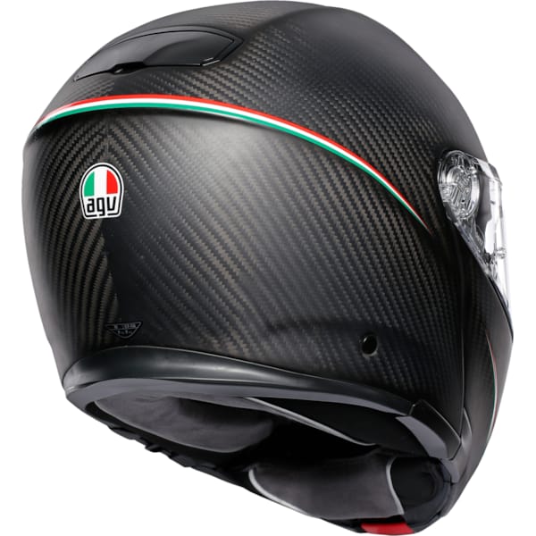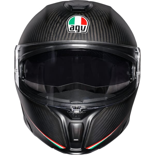 ‘Integraal’ ontmoet ‘systeem’, dat moet zowat de achterliggende gedachte geweest zijn toen de Sportmodular bij AGV uit de startblokken schoot. Deze systeemhelm (alleen zo gehomologeerd) bestaat bovendien voor 100% uit carbonvezels.