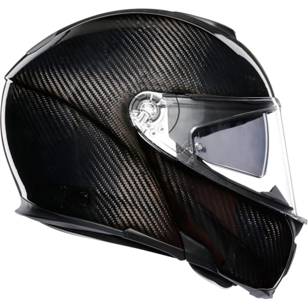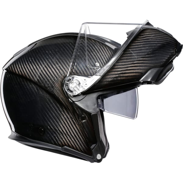 ‘Integraal’ ontmoet ‘systeem’, dat moet zowat de achterliggende gedachte geweest zijn toen de Sportmodular bij AGV uit de startblokken schoot. Deze systeemhelm (alleen zo gehomologeerd) bestaat bovendien voor 100% uit carbonvezels.