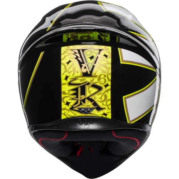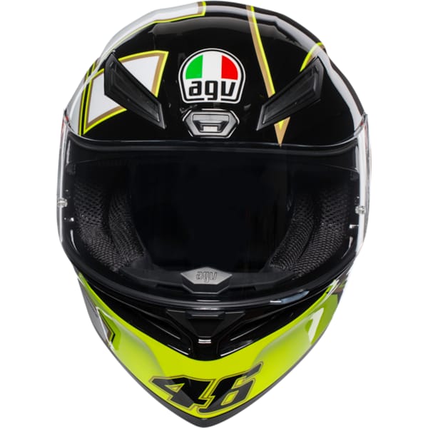 AGV – al 70 jaar actief en bijna 25 jaar motorhelmleverancier van Valentino Rossi – tracht verder te gaan dan veel andere helmproducenten. Zeker vanuit veiligheidsperspectief en met een traditie in de racerij, overstijgen ze graag de standaard. Ook bij de K1 is dat zo. In dat opzicht valt vooral het ‘collarbone safe profile’ op, waarbij de vorm van de motorhelm onderaan voorkomt dat je bij een letterlijke opdoffer je eigen sleutelbeen in twee breekt. Datzelfde profiel (met twee steunpunten en een boogvorm in het midden) maakt een helmdonut trouwens geen overbodige luxe.