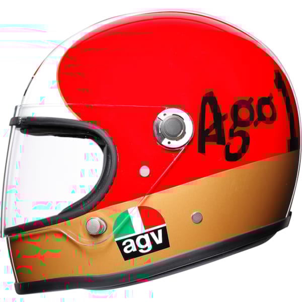 De X3000 draagt de stempel van Giacomo Agostini, die inderdaad een specifiek kinstuk wou om plat op de motorfiets te kunnen liggen. Ook de (alleen op het eerste zicht) dubbele drukknop waarmee je het vizier vastmaakt stamt uit de traditie van de Italiaanse toprijder uit de jaren 1960 en 1970.