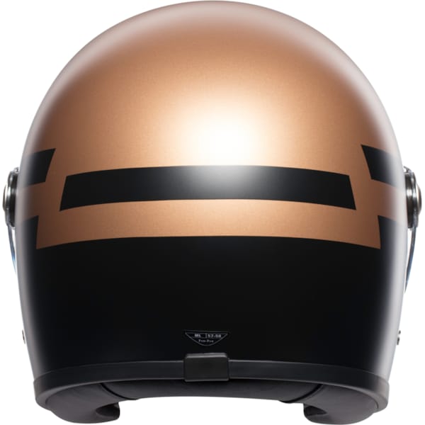 De helmschaal in glasvezel komt maar liefst in drie verschillende formaten om de verschillende helmmaten zo strak mogelijk te bevatten. Je bent een racemerk of je bent het niet, en dat resulteert in zeer compacte, strakke en lichte motorhelmen. Ook al omdat ze – vintage 1950 tot 1970 – heel weinig extra’s bevatten.