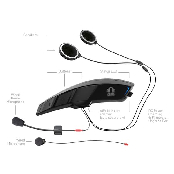 De ARK van SENA, dat is een intercommodule die compatibel is met de Italiaanse AGV-motorhelmen. Heb je daarvoor een compleet andere module nodig dan? Nou … om allerlei redenen kiezen helmmerken graag voor een eigen, individuele invulling.
