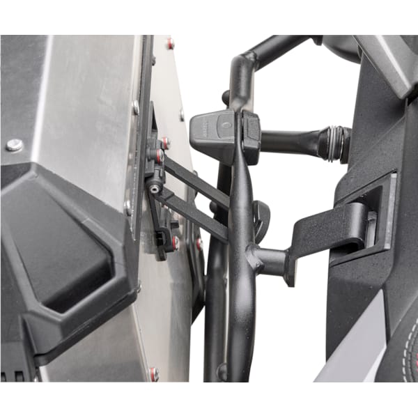 PAS OP: wie een PL__, PLR__, PLO__, PLOR__-houder heeft, moet éérst de twee meegeleverde afstandsringen onderaan de beugels monteren! Anders klikt er straks niets vast. De onderste bevestiging van deze Monokey-zijkoffers is enkele millimeters breder dan bij andere zijkoffers. In elke zijkoffer van dit type hangt daarom ook een QR-code die doorlinkt naar de gebruiksaanwijzing om dit op de beste, vlotste manier te doen.